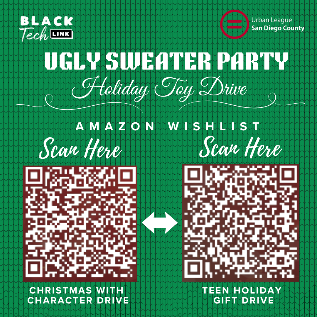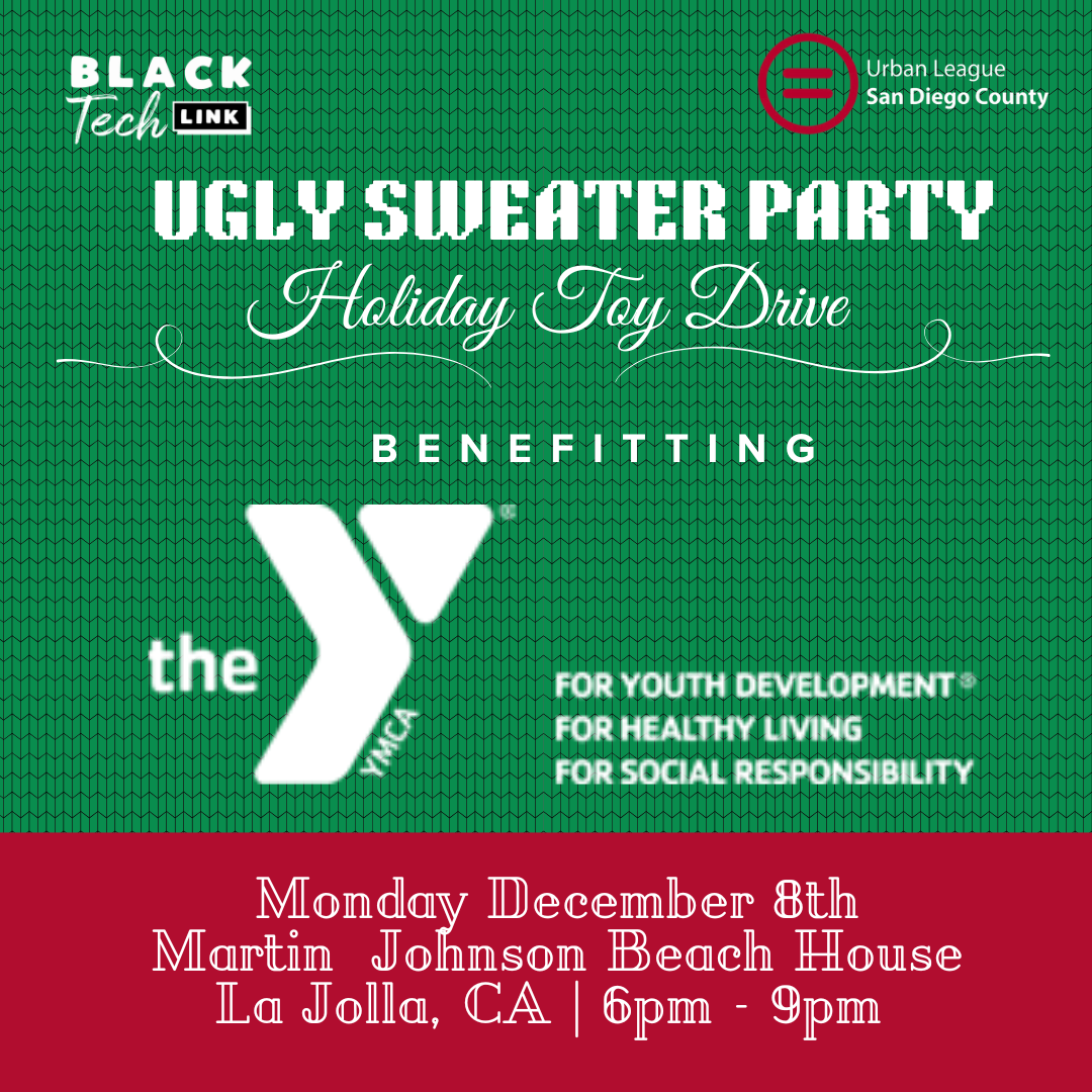 Black Tech Link and the San Diego Urban League Young Professionals invite you to our 5th Annual Ugly Sweater Party & Toy Drive. Enjoy an evening of festive fun, community spirit, and ocean views. Join us on Monday, December 8th, at the Martin Johnson Beach House for a holiday celebration that makes a difference.